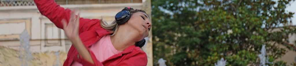 PLACE DES HÉROÏNES est un spectacle chorégraphique, sur une place publique, pour 120 spectateurs et spectatrices muni·es de casques audio.